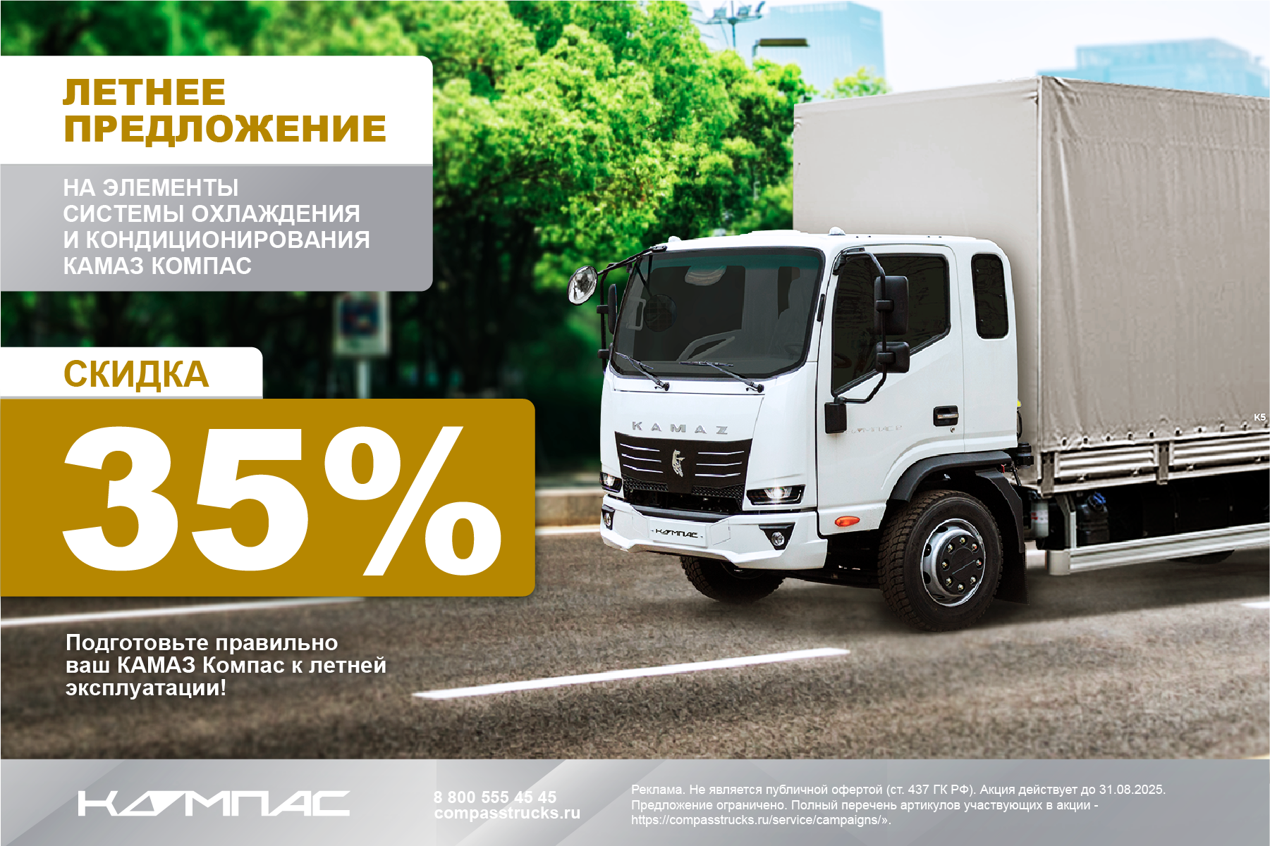 Специальное летнее предложение на детали системы охлаждения и кондиционирования для КАМАЗ Компас до 31 августа.